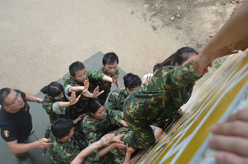 此次拓展主要是以提高員工的綜合素質(zhì)、團(tuán)隊(duì)意識(shí),促進(jìn)員工的成長(zhǎng)為目的。為了使拓展收到切實(shí)效果,讓每個(gè)參加活動(dòng)的員工都能在活動(dòng)中充分體驗(yàn)和感受活動(dòng)內(nèi)容凸顯出來(lái)的團(tuán)隊(duì)精神,在活動(dòng)開(kāi)始時(shí),教練將員工分成了2個(gè)隊(duì),每個(gè)隊(duì)在隊(duì)長(zhǎng)、隊(duì)秘的帶領(lǐng)下確定了自己的隊(duì)名、口號(hào)、隊(duì)歌、隊(duì)旗等。在拓展過(guò)程中2個(gè)隊(duì)按照項(xiàng)目要求,堅(jiān)持不拋棄不放棄的團(tuán)隊(duì)精神,互幫互助,將每個(gè)人的智慧、力量融入到團(tuán)隊(duì)中,在大家的共同努力下出色的完成了信任背摔、空中斷橋、真人CS、茫茫人海、勝利墻等一項(xiàng)項(xiàng)艱巨而富有挑戰(zhàn)性的項(xiàng)目。